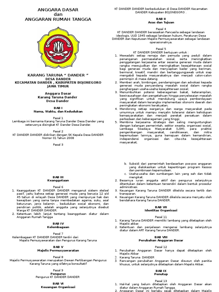 Anggaran dasar dan anggaran rumah tangga karang taruna satria manunggal. Use the download button below or simple online reader. Unknown 2 februari 2020 18 57. Share embed adart karang taruna 2017 2020 html pdf.