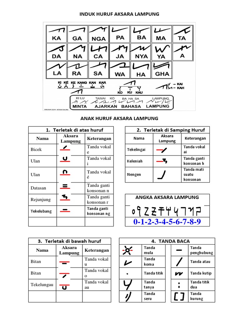Anak huruf aksara lampung. Anak huruf yang terletak di bawah huruf 1. Disini kita hanya ingin mememaparkan apa itu huruf induk dan apa itu anak huruf berikut kita simak. Aksara lampung terdiri dari huruf induk anak huruf ganda anak huruf dan kelompok konsonan ada juga simbol angka dan tanda baca. Karya karya ilmiah tentang bahasa dan juga aksara lampung semuanya memakai ra untuk menuliskan huruf atau fonem ke 16 aksara lampung.