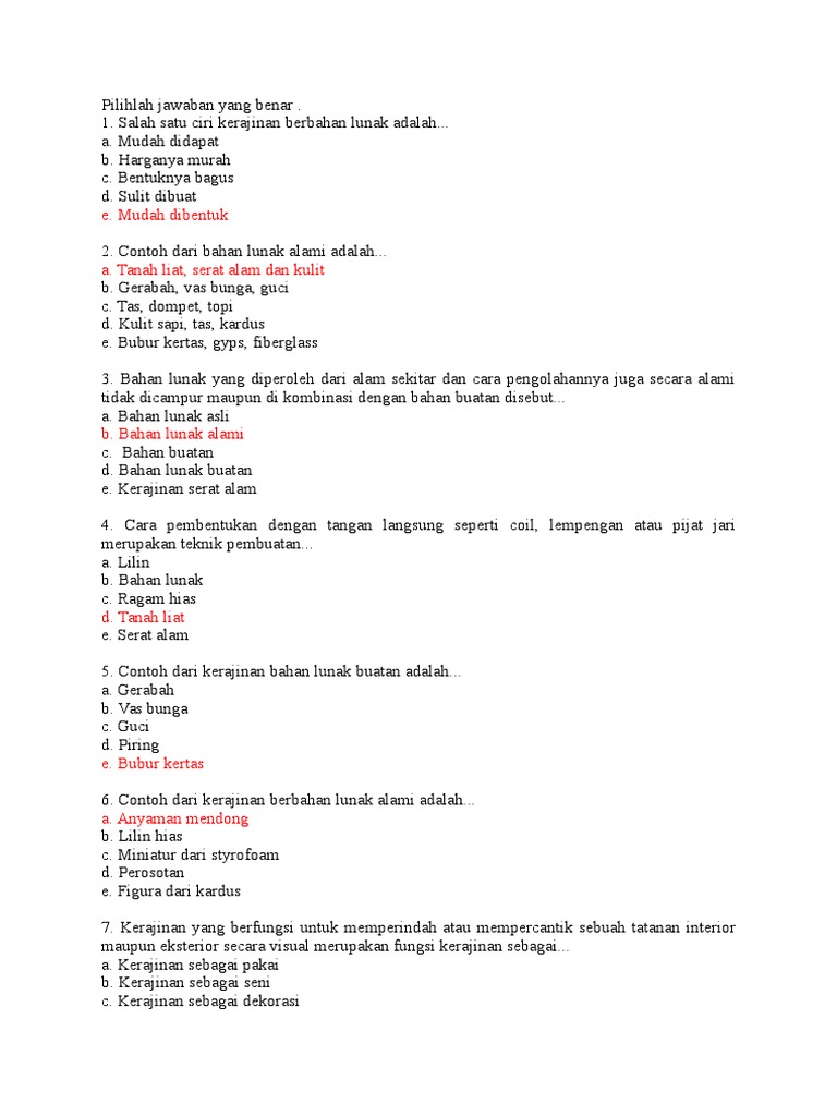 Kumpulan soal pilihan ganda materi kerajinan bahan lunak contoh dari kerajinan bahan lunak buatan adalah a. Alat yang digunakan untuk mengukir bahan lunak dinamakan. 2 kerajinan bahan lunak alami dari serat alam kerajinan serat alam adalah sebuah karya kerajinan yang menggunakan bahan baku serat alam dengan teknik pembuatan kerajinan sebagian besar dibuat dengan cara. Bahan lunak buatan adalah bahan untuk karya kerajinan yang diolah menjadi lunak.