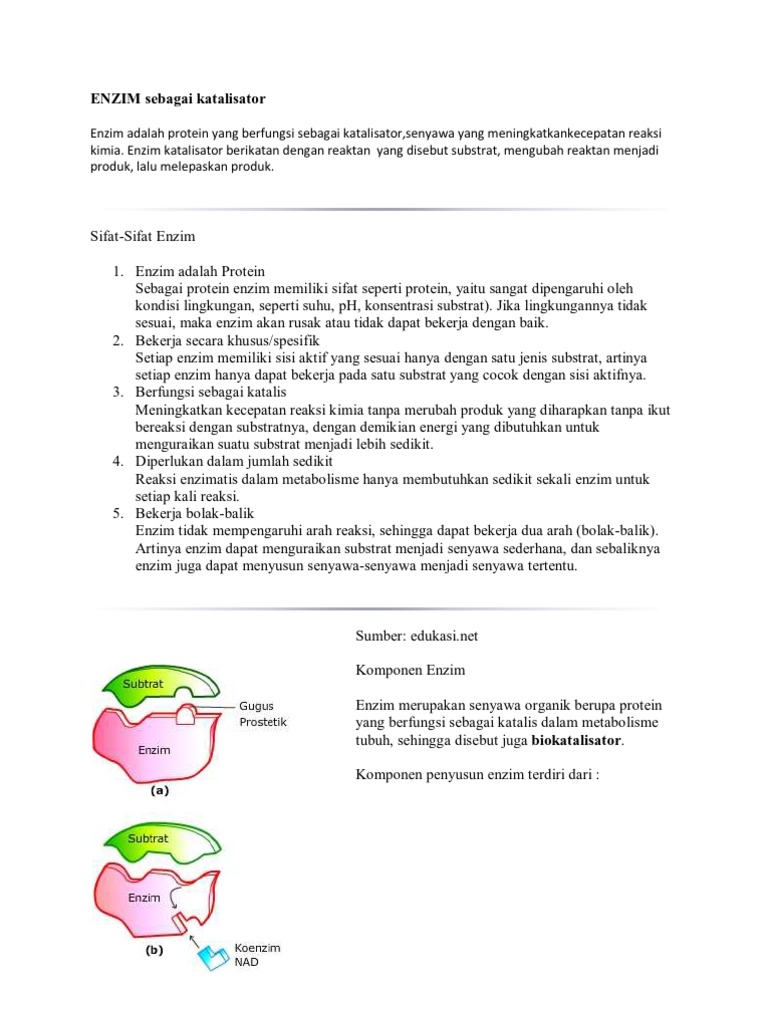 Biokatalisator enzim enzim adalah biomolekul berupa protein yang berfungsi sebagai katalis senyawa yang mempercepat proses reaksi tanpa habis bereaksi dalam suatu reaksi kima organik. Contoh koenzim adalah nad dan fad. Sebagian struktur enzim ialah sebuah senyawa protein. Jenis produk yang akan dihasilkan bergantung pada.