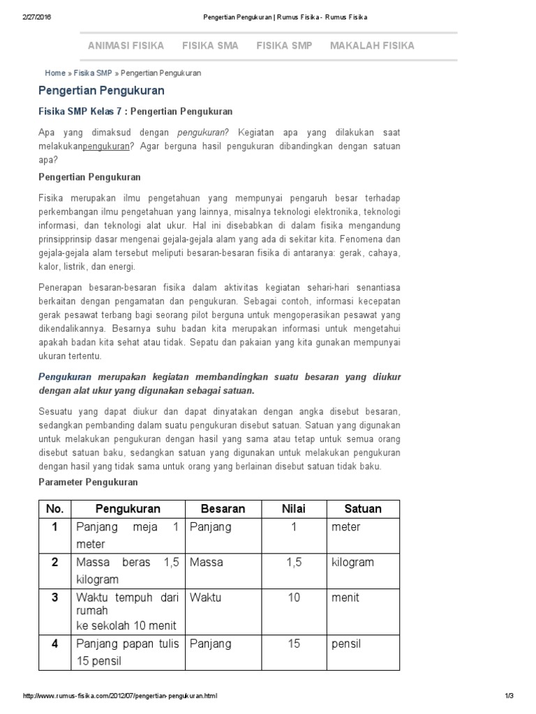 Pengukuran fisika kelas 10 konsep pengertian dan contoh soal august 13 2019 fisika mapel dalam materi pengukuran ini akan ada beberapa yang dibahas yakni konsep besaran besaran pokok besaran turunan konsep satuan konsep dimensi aturan angka penting konsep notasi ilmiah dan konsep pengukuran. Fisika adalah ilmu pengetahuan yg mempelajari. Pengukuran pengukuran yang sangat teliti diperlukan dalam fisika agar gejala gejala peristiwa yang akan terjadi dapat diprediksi dengan kuat definisi besaran secara fisika adalah segala sesuatu yang dapat diukur dan dinyatakan dengan angka eksak misalnya panjang luas volume dan kecepatan sedangkan warna indah cantik bukan termasuk.