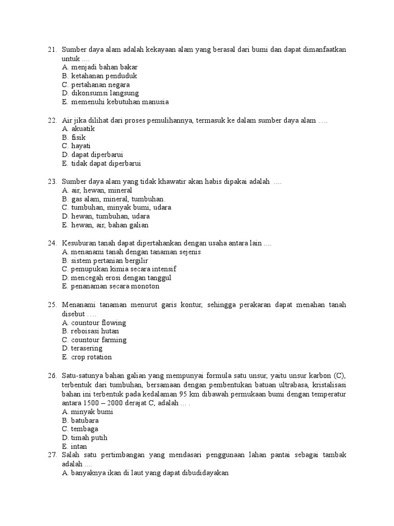 Sumber Daya Alam Yang Dapat Diperbaharui Adalah A Tembaga B Batubara C Tumbuhan D Minyak Bumi