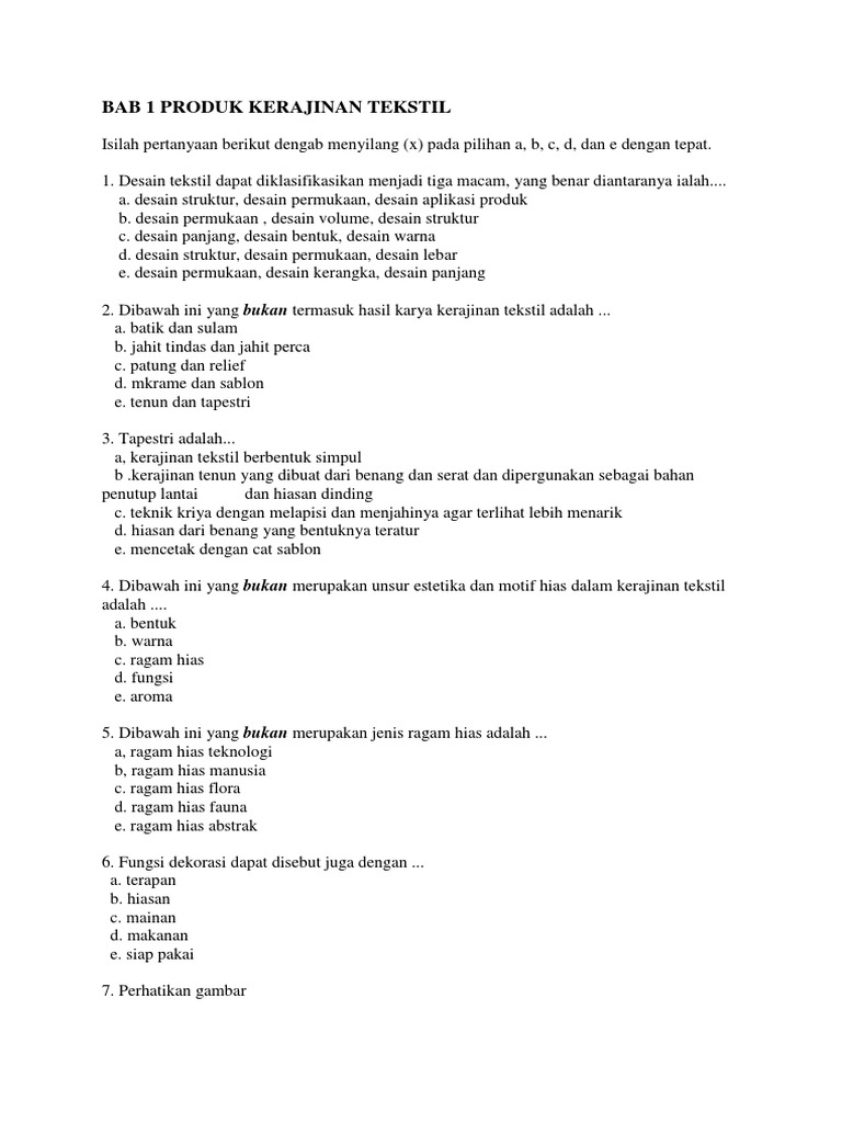 Teknik dasar pembuatan produk kerajinan tapestri adalah a mengikat b menjahit c menenun d memintal. Alat tenun dipakai untuk memegang helai helai. Menenun menggunakan alat spanram atau bingkai yang direntangkan benang benang lungsi sebagai jalur jalannya benang tenunan atau pakan. Teknik teknik dasar dalam keterampilan kerajinan tekstil yang dapat digunakan untuk memproduksi kerajinan ikat celup makrame dan tapestri sebagai berikut kecuali. Mengikat adalah teknik.