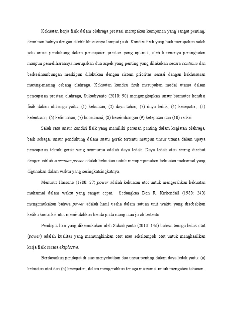 Unsur penting yang terdapat dalam daya ledak adalah. Seperti air h2o garam naci gula pasir ch3cooh dan lain lain. Tiga hal penting dalam kebugaran jasmani yaitu. Dengan demikian kekuatan memainkan peranan penting dalam komponenkomponen dan kemampuan fisik yang lain. Kesehatan jasmani ini biasanya disebut dengan kebugaran jasmani.