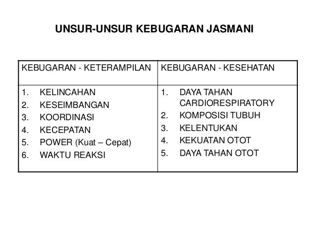 Unsur unsur kebugaran jasmani. Kekuatan strength kekuatan adalah kondisi tubuh dalam menggunakan otot untuk memaksimalkan tenaga ketika melakukan suatu aktifitas fisik. Kebugaran jasmani memiliki 10 unsur unsur yaitu sebagai berikut. Unsur unsur kebugaran jasmani pada kesempatan kali ini admin akan membahas sebuah materi mengenai unsur unsur kebugaran jasmani cara melatih dan juga manfaatnya. Seperti yang telah kita ketahui kesehatan dan kebugaran adalah faktor yang sangat penting.